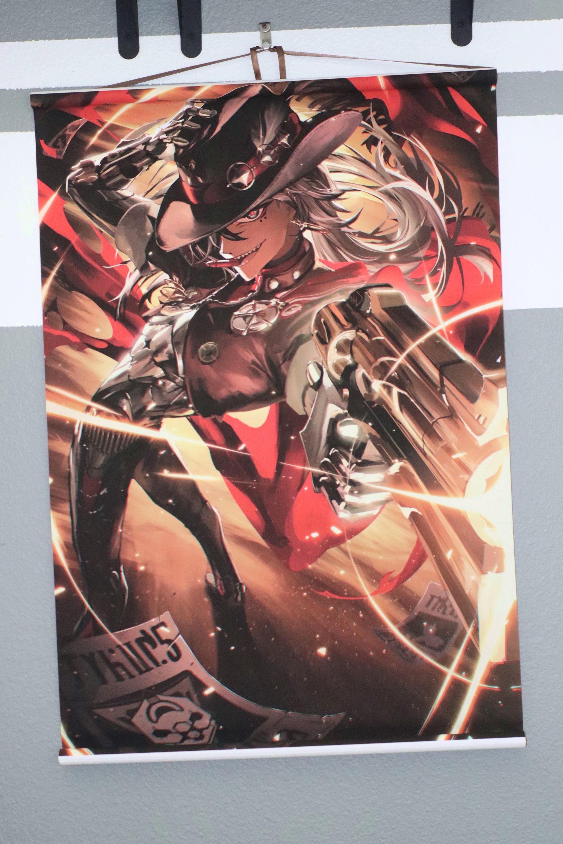 - 20" x 30" Printed on Silk. Attached to two plastic rolls, string included on top.