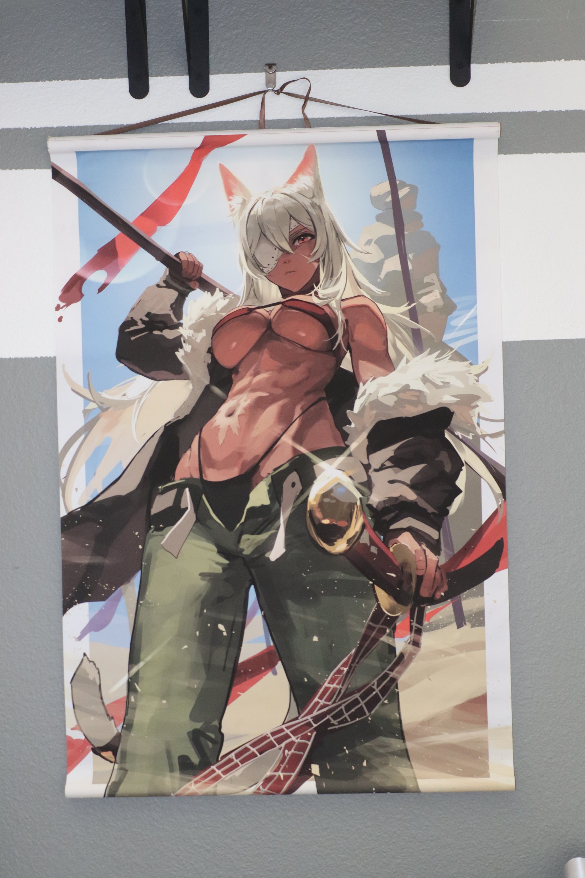 - 20" x 30" Printed on Silk. Attached to two plastic rolls, string included on top.