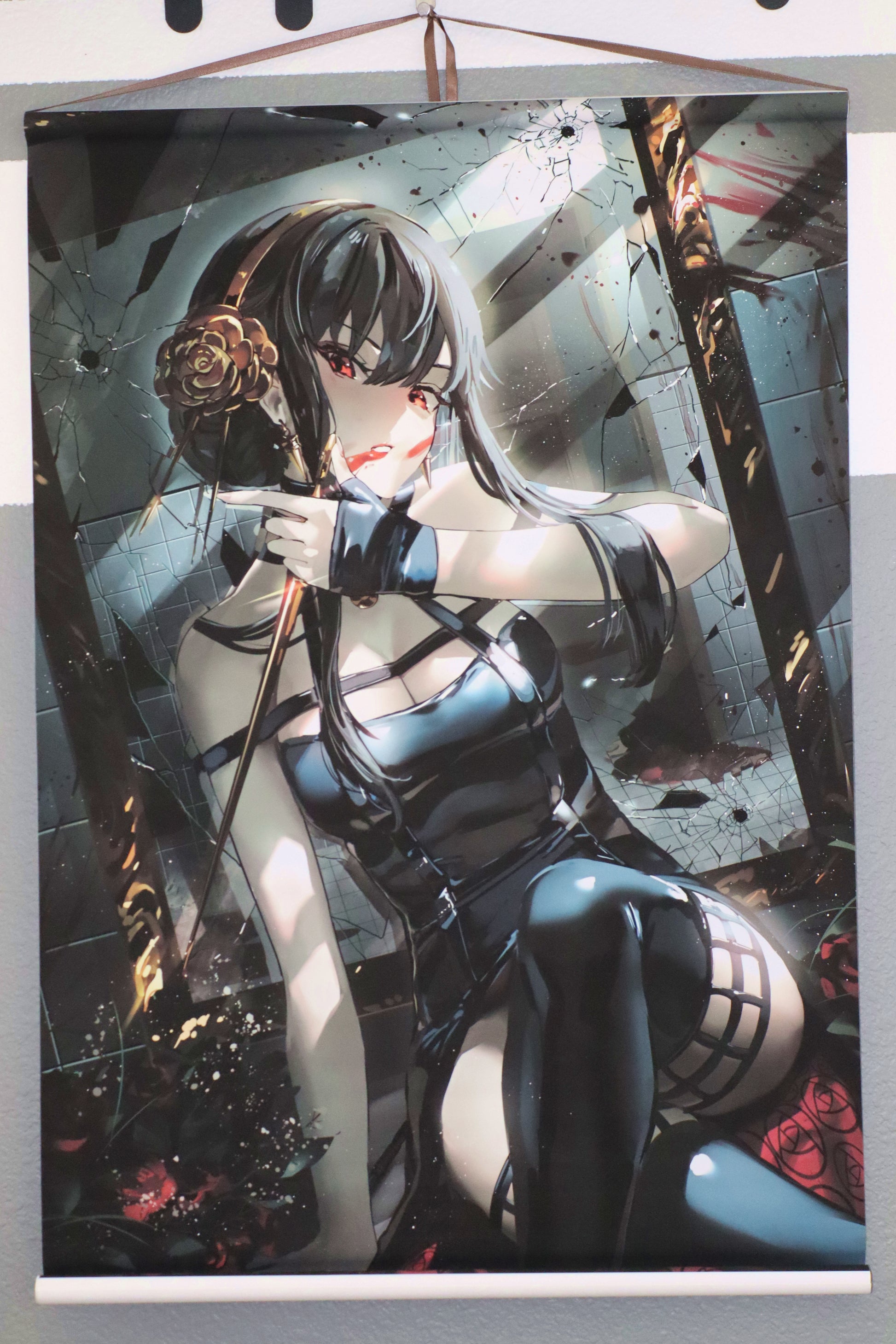 - 20" x 30" Printed on Silk. Attached to two plastic rolls, string included on top.